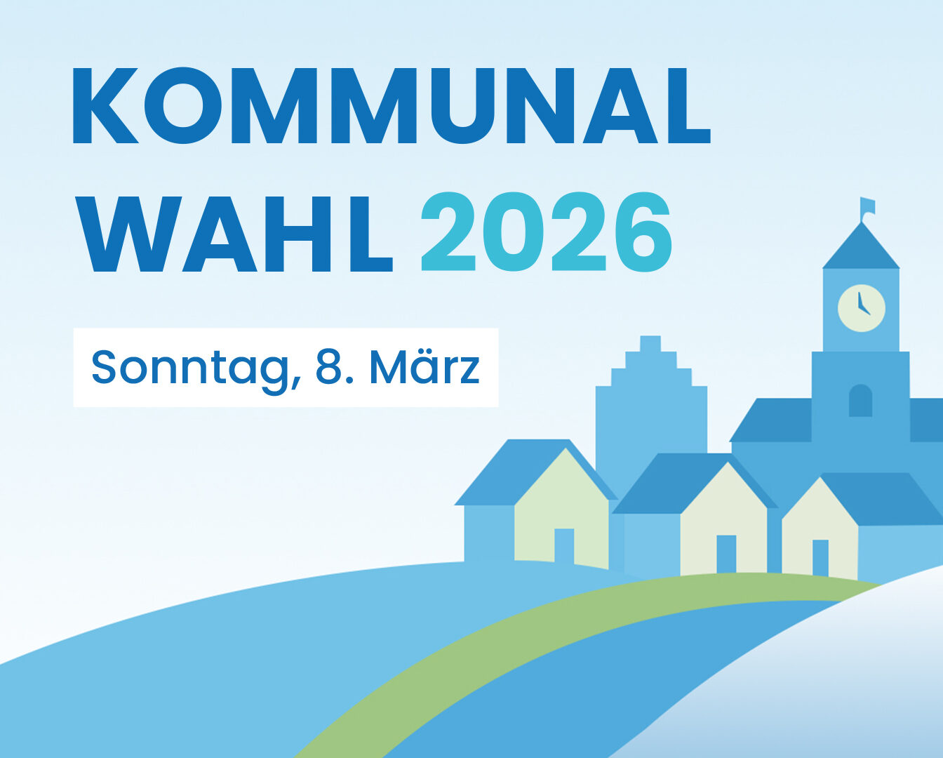 Die Kommunalwahl 2026 steht kurz bevor. Alle Wahlberechtigten sollten bis Samstag, 14.02.2026 ihre Wahlbenachrichtigungen erhalten haben. Auf der Rückseite der Wahlbenachrichtigung finden Sie den Antrag für einen Wahlschein und Briefwahlunterlagen. Sie können die Unterlagen aber auch schon jetzt online beantragen. Ab Montag, 16.02.2026, werden Briefwahlunterlagen im Rathaus ausgegeben oder per Post verschickt.