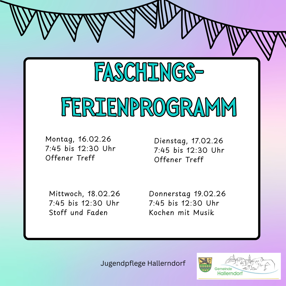 Nähere Informationen und Anmeldungen für das Faschingsferienprogramm sind über das Online-Portal www:hallerndorf.ferienprogramm-online.de möglich.
